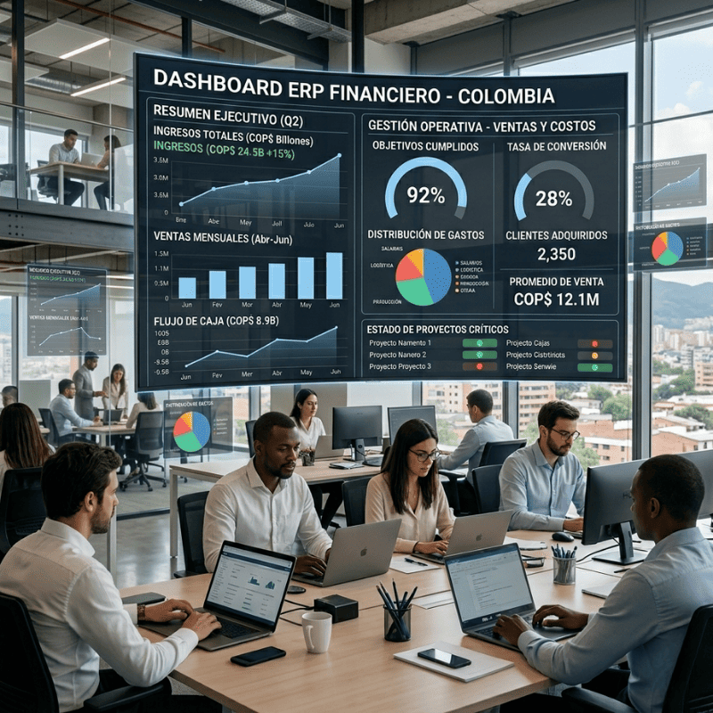 Automatiza inventarios, finanzas, compras, producción y talento humano desde una sola plataforma. Reduce errores humanos, elimina reprocesos y mejora la trazabilidad de cada movimiento.